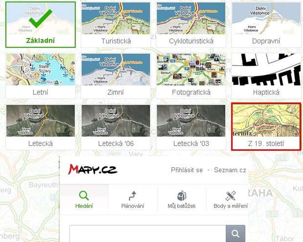 Výběr Druhého vojenského mapování na mapy.cz