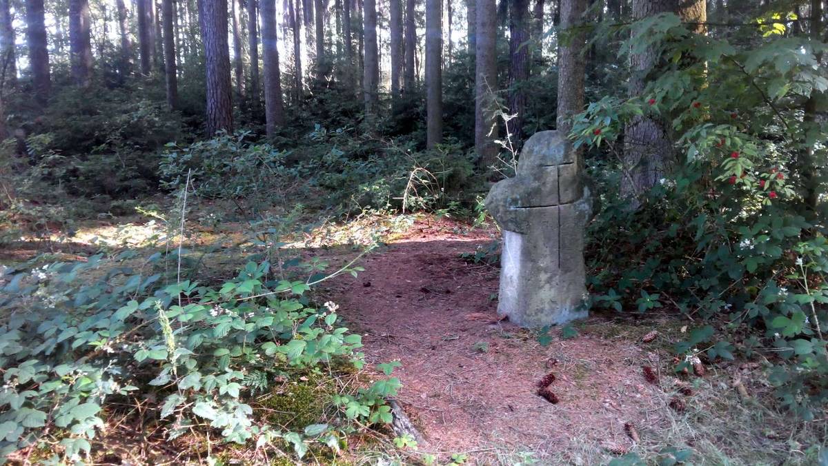 Borovnice-Rájec Kamenný kříž s poškozeným levým ramenem,na přední straně vyrytý dvojitý kříž a letopočet 1714,na zadní straně vyrytý jednoduchý kříž.
