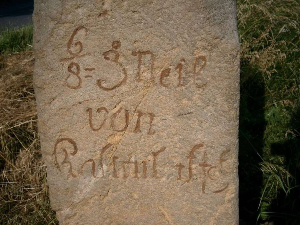 Na přední straně je vytesán nápis: „4 ? Meil von Olmütz“. Na levé boční: „3/8 Meil von Löschnitz“ a na pravé straně „./8 Meil von Kalte n Lautsch“.