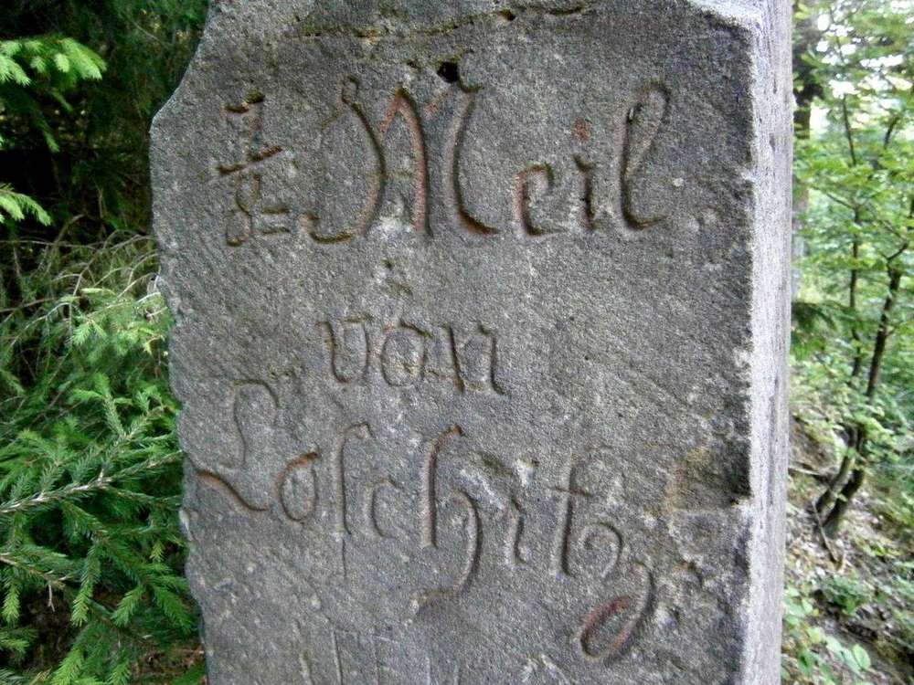 Na čelní straně nápis: 1/8 Meil von Löschnitz“, na pravé: 2/8 Meil von Kalten Lautsch“.