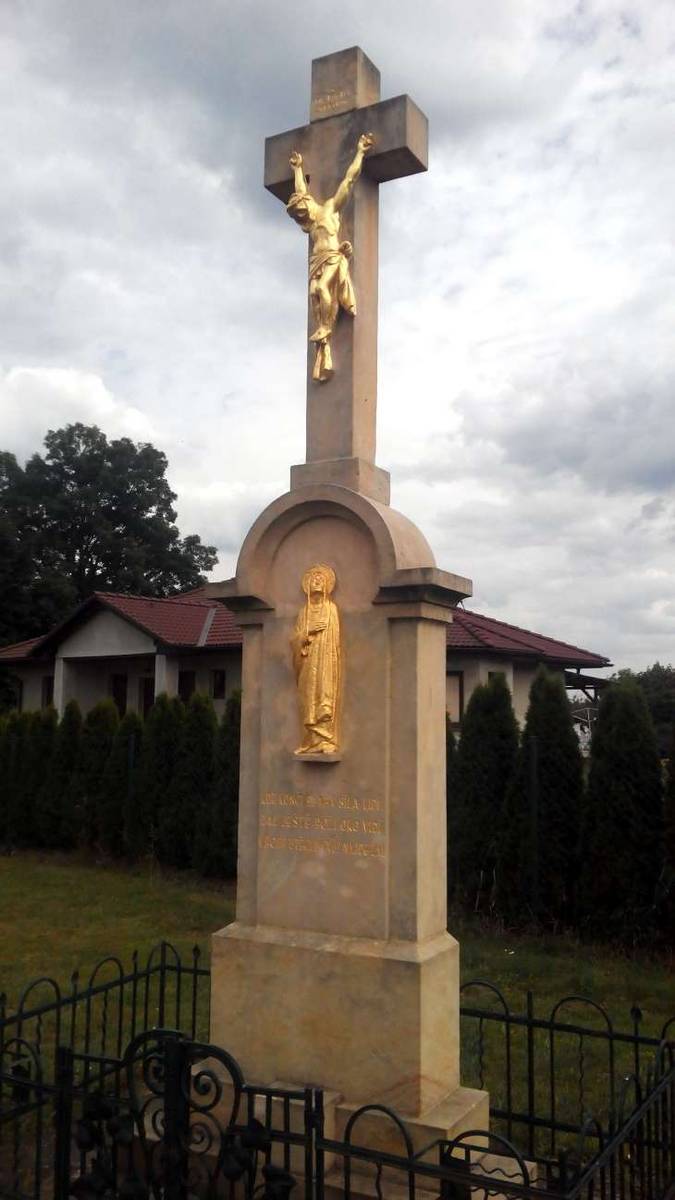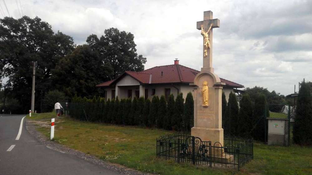 Malá Čermná nad Orlicí Kamenný kříž na kamenném čtyřbokém podstavci.Na kříži je pod nápisem "Hic est rex judaeorum" zlacená postava Krista.