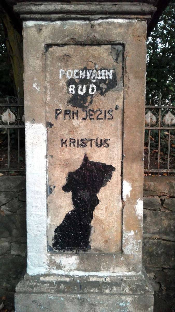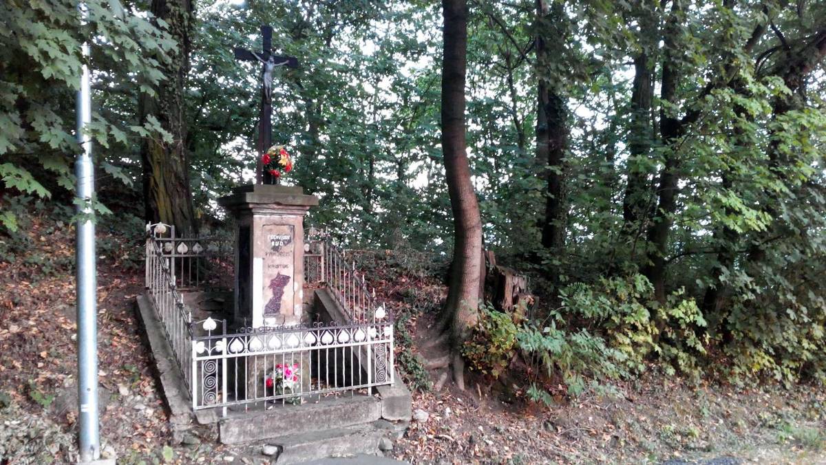 Choceň Litinový kříž na kamenném čtyřbokém podstavci, na přední straně podstavce nápis: Pochválen buď Pán Ježíš Kristus. Okolo základové desky je kovový tepaný plot.