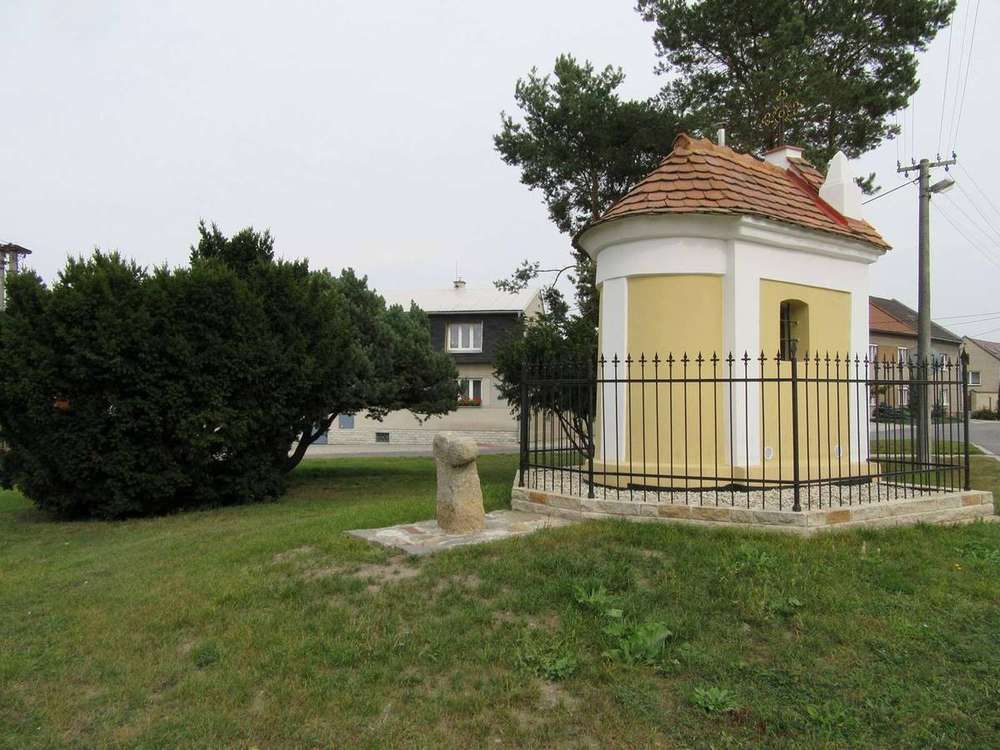 Křelov Kulturní památka. Torzo kříže se nachází za kapličkou Nanebevzetí Panny Marie.