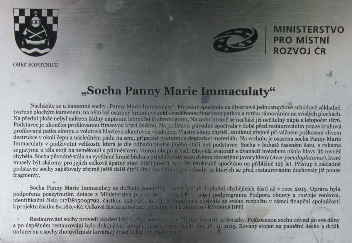 Sopotnice Původně stála socha bez sloupu pár metrů jižně, viz informační tabulka.