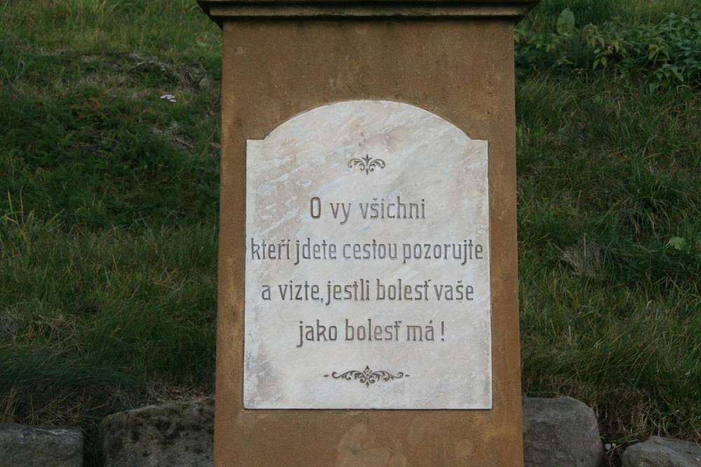 Hnátnice Nápis na čelní straně : Ó vy všichni kteří jdete cestou a vizte, jestli bolest vaše jako bolest má !