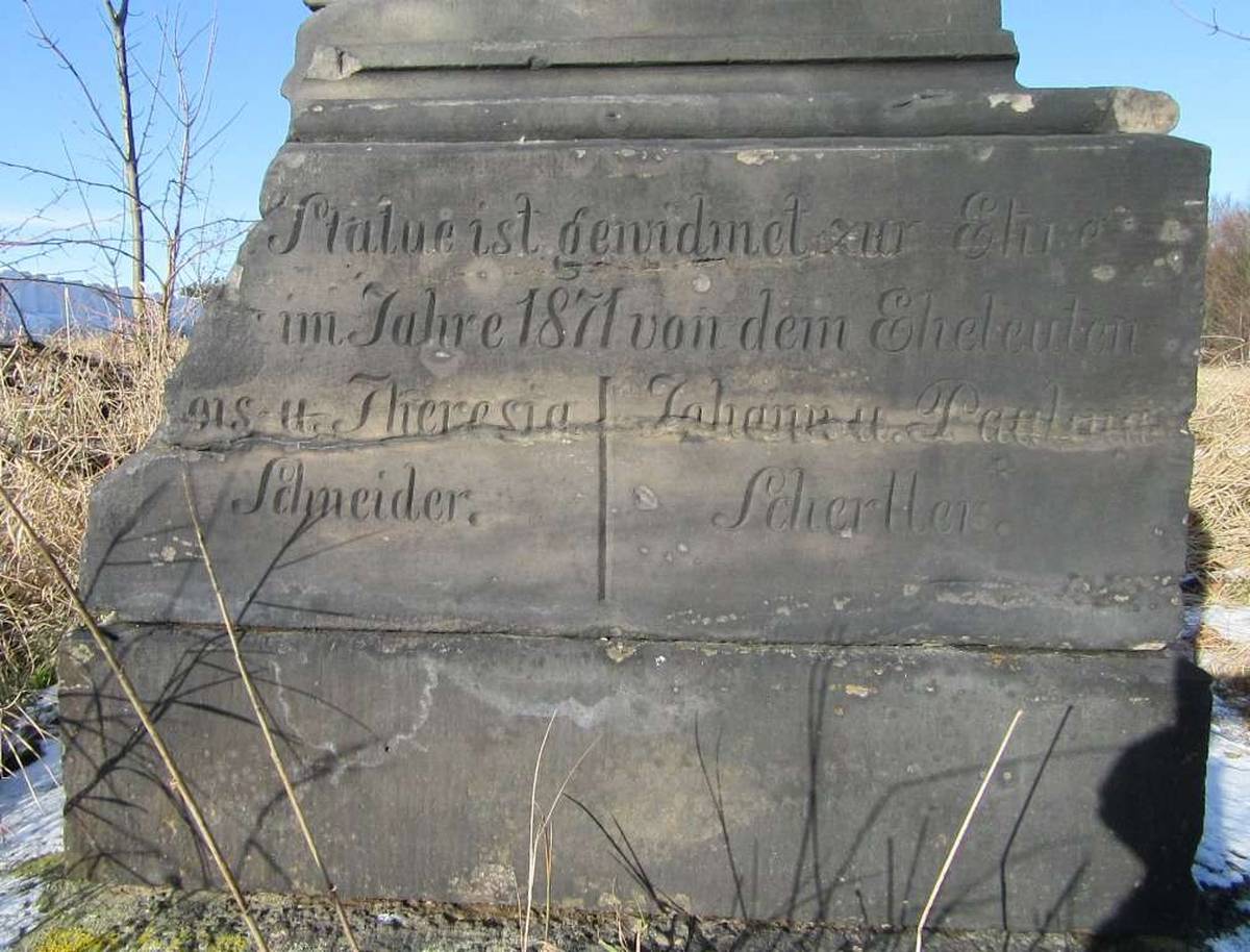 Hynčina Na podstavci je letopočet 1871, chybí vrcholový křížek.