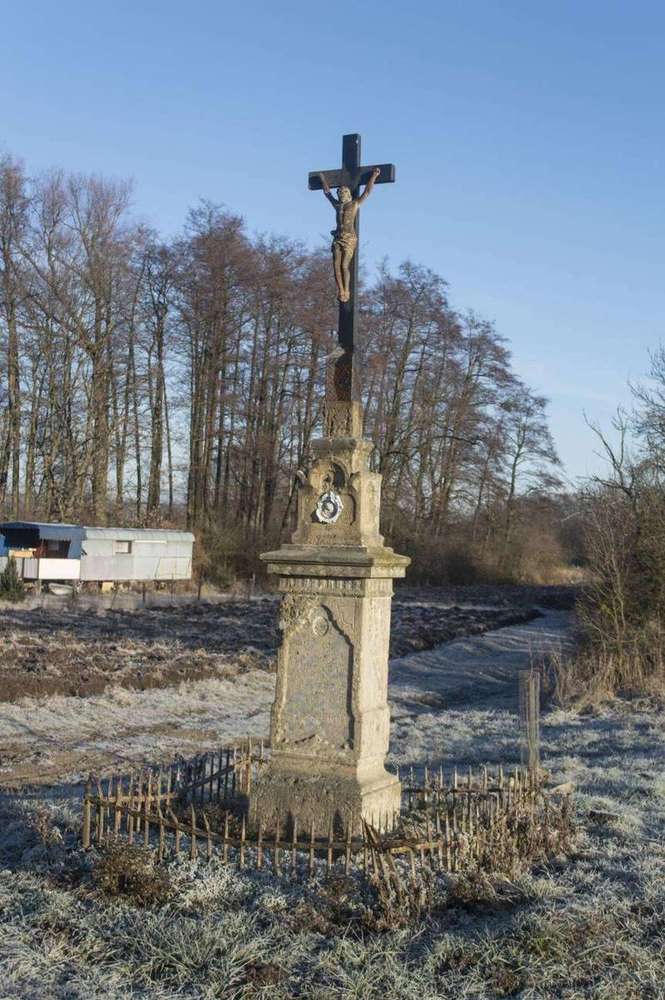 Petrovice Kamenný dřík s kovovým křížem stojící při cestě do Lesonic, na východním okraji obce. Na dříku je český nápis stále čitelný. Na podstavci je již nečitelný. Povrch je poškozen a skleněná či keramická ozdoba je rozbita.