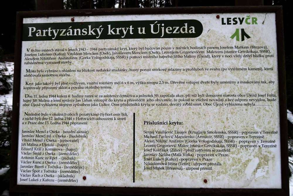 Horní Kařízek Pomník padlým v 2. svět válce, kteří vedli odboj proti nacistům z partyzánského krytu, situovaného v lese mezi Újezdem a Horním Kařízkem.