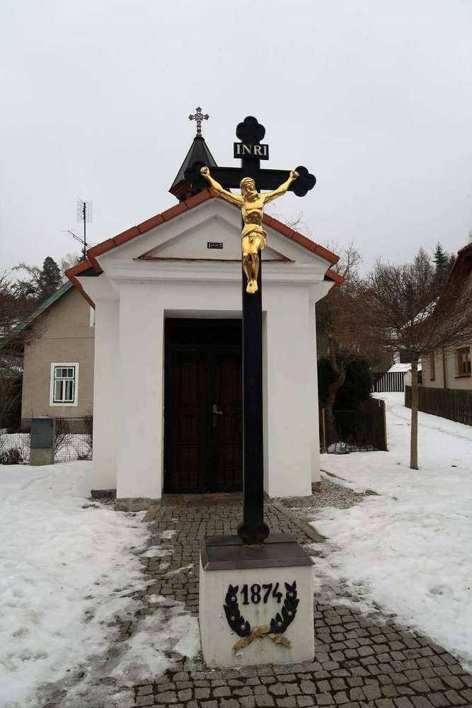 Neřežín Litinový kříž z r. 1874, vyrobený v komárovských železárnách.
