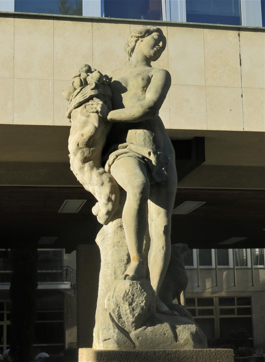Most Sochy Jana Brokoffa původně úmístěné na průčelí renesanční radnice ve starém Mostě, zbořené 1882