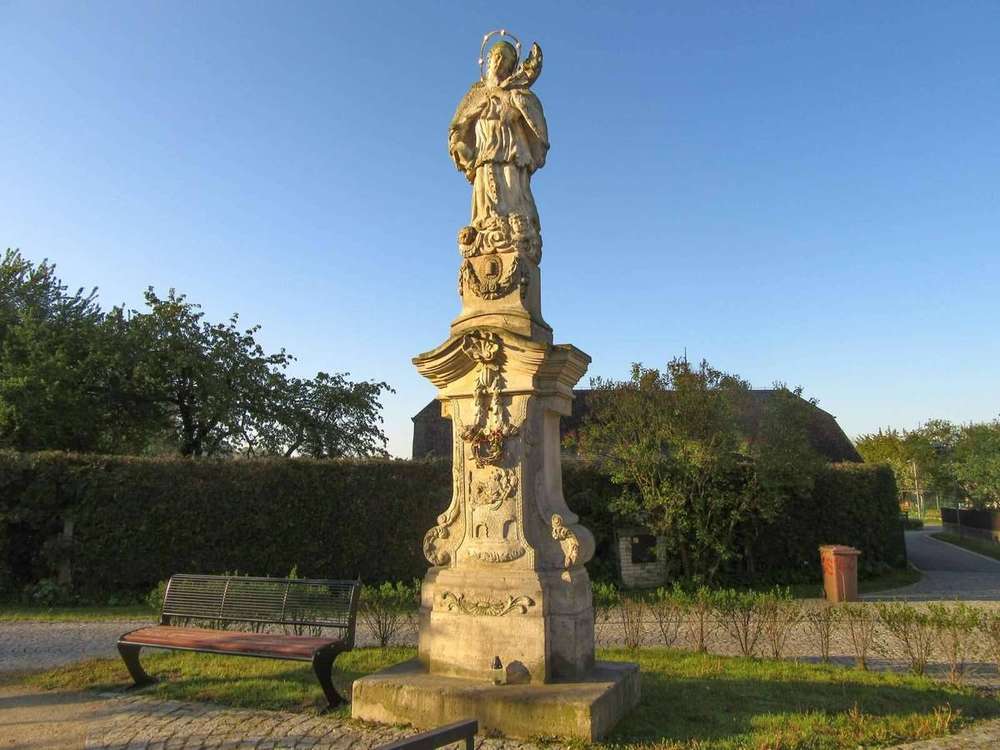 Bludov Kulturní památka, postaveno 1818. Původní stanoviště sochy bylo v areálu kostela.