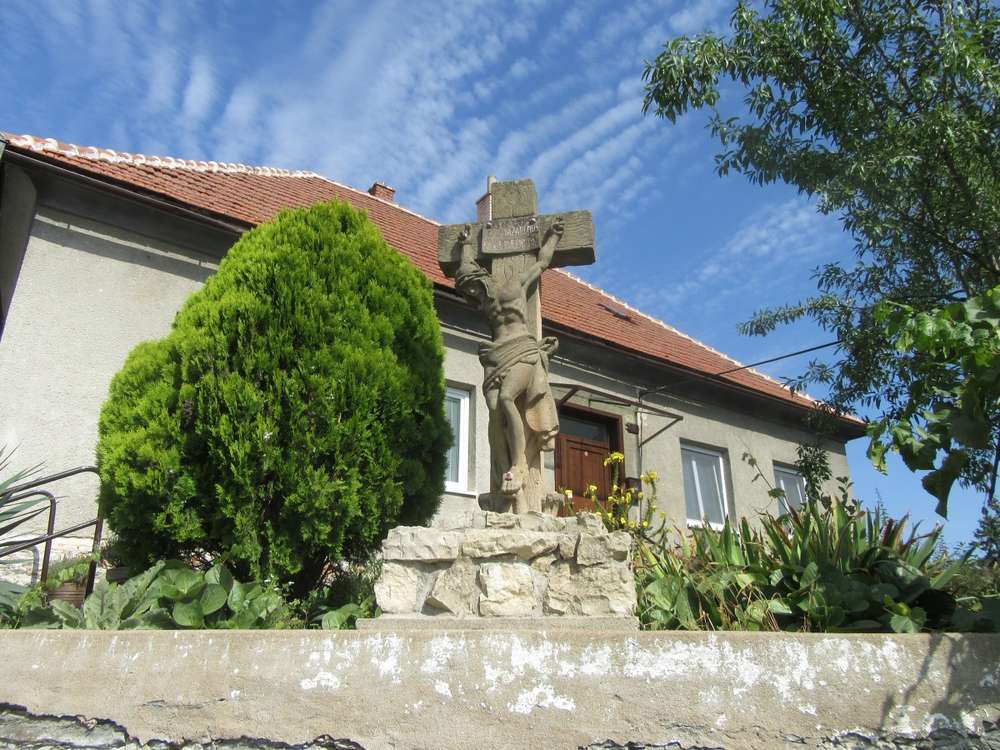 Náměšť na Hané Kříž stojí na soukromém pozemku v zahradě.
