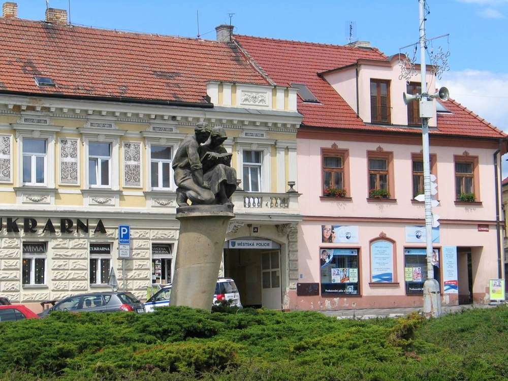 Uprostřed náměstí T.G. Masaryka se nachází sousoší z dob budování reálného socialismu. Nejen, že je díky tůjovému porostu téměř nepřístupné, ale také informace o něm jsou téměř nedohledatelné.