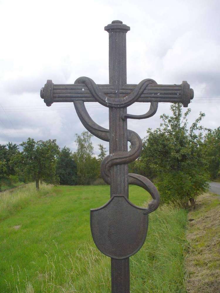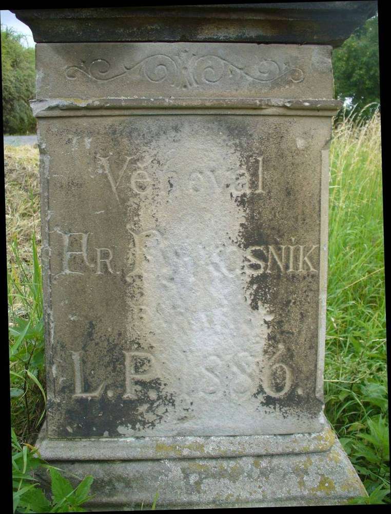 Třebívlice Aktuálně (září 2021) je na místě pouze poškozený sokl, kovový kříž chybí (zřejmě vylomen a odcizen)