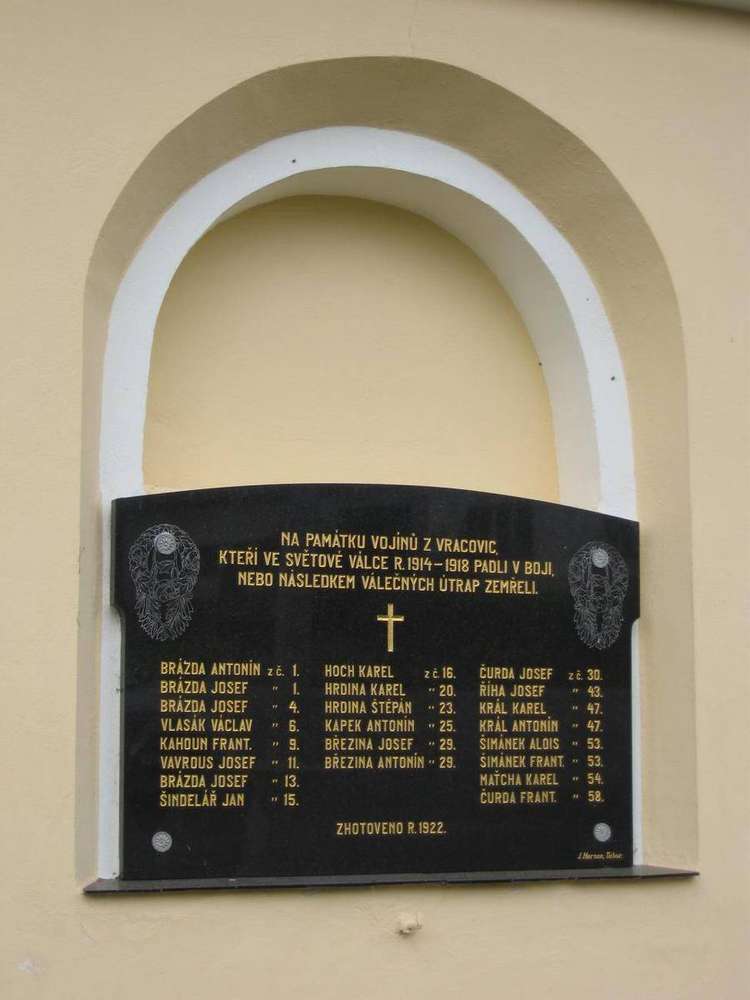 Vracovice Na zadní stěně kaple je umístěna pamětní deska obětem první světové války z obce Vracovice.