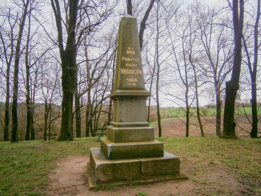 Vraclav Pomník byl postaven roku 1908, tedy po 800 letech od vyvraždění rod Vršovců.