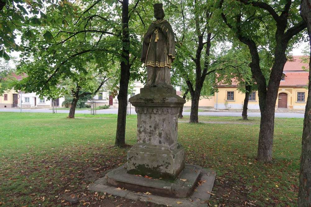 Hostomice pod Brdy Socha sv. Jana Nepomuckého na náměstí, z roku 1871.