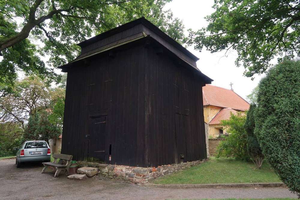 U hřbitovní zdi směrem do návsi se nachází zvonice. Celodřevěná nástavba je postavena na kamenné podezdívce. Nízká střecha zvonice je krytá šindelem. Zvonice čtvercového půdorysu byla postavena na konci 18. století. Celková výška zvonice je necelých sedm metrů. Uvnitř je zavěšen jediný zvon. Ostatní tři zvony byly zrekvírovány v I. světové válce. Na schody ke zvonici jsou použity dva velké kameny. Údajně byly na toto místo přemístěny ze zdejšího pravěkého pohřebiště z jednotlivých hrobů. V roce 1991 byla provedena oprava šindelové střechy. (Wikipedie)