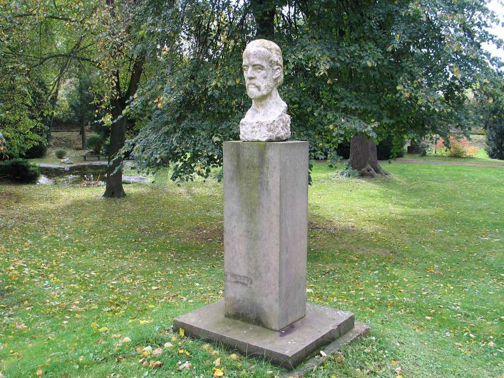 Roztoky Busta je umístěna v zámeckém parku, asi 10 m jižně od fontánky před Středočeským muzeem. Připomíná prázdninový pobyt Bedřicha Smetany, který zde byl v srpnu 1857 ubytován se svou rodinou ve vile Mia čp. 79. Podle datování na podstavci, busta zde byla umístěna v květnu roku 1965.
