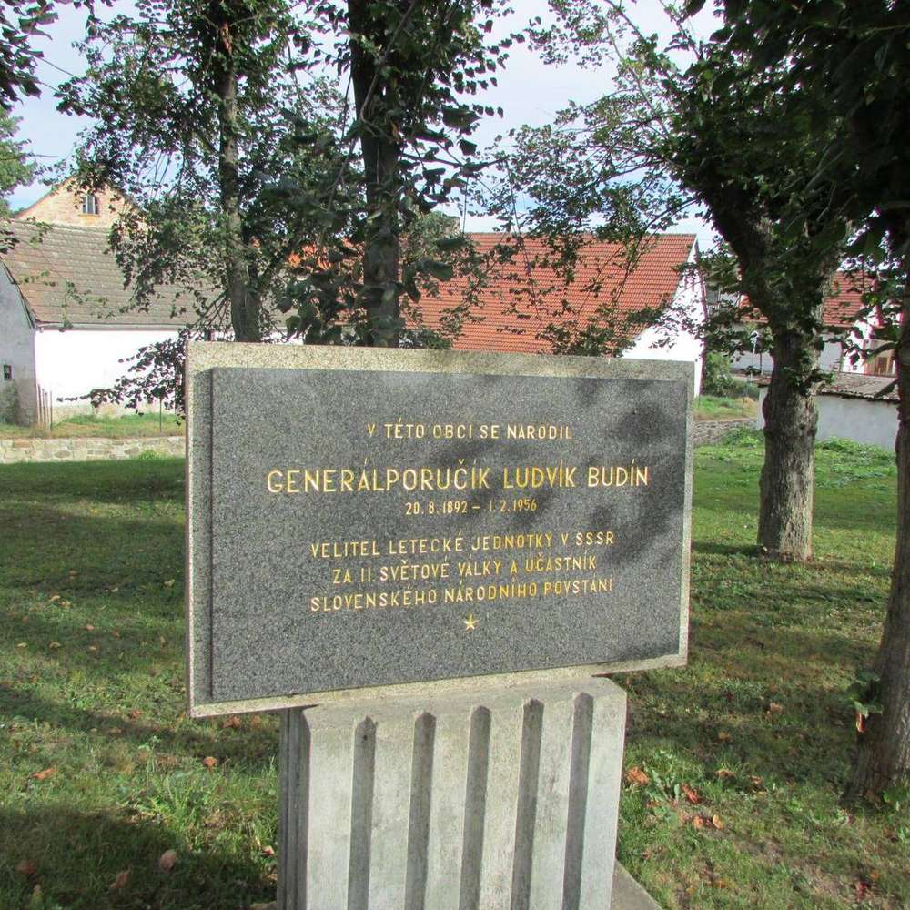 Popelín Pomník generála letectva Ludvíka Budína, velitele československých leteckých sil v SSSR za II.světové války