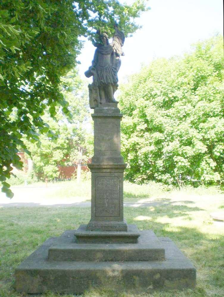 Pšov u Podbořan Na hranolovém soklu s letopočtem 1715 je barokní plastika sv. Floriána v obvyklém pojetí, v římské zbroji s praporcem a hořícím domem u nohou, zalévá oheň vědrem v pravé ruce.