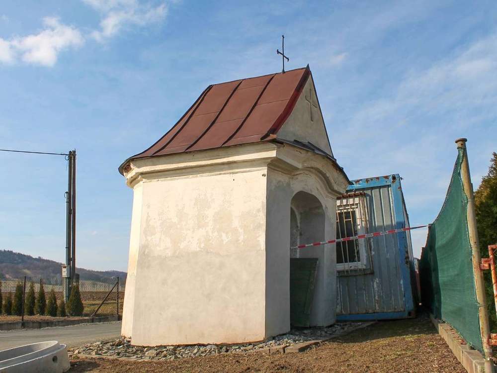 Horní Libina Kaplička zatarasená novou zástavbou.