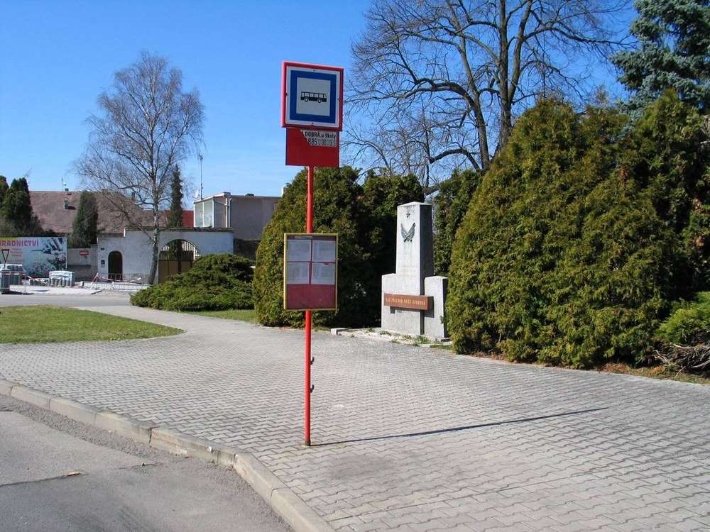 Pomník Rudé armádě se nachází v bezprostřední blízkosti autobusové zastávky "Velká Dobrá, U školy", po pravé straně silnice Karlovarská ve směru na Doksy. Na centrálním žulovém kvádru se pod datumem 9. 5. 1945 nachází text věnování: "Na památku našim osvoboditelům Rudoarmějcům". Na čelní straně horizontálně vsazené desky z červeného mramoru lze číst text "VÁŠ PŘÍCHOD NAŠE SVOBODA". Pod touto deskou je vlevo umístěna malá kovová cedulka s textem "Zde je uložena prsť hrdinných obránců od Stalingradu. Složky NF Velká Dobrá - 9. 5. 1975".