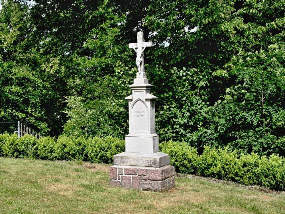 Lubná u Poličky Nápis na podstavci : Pochválen buď Pán Ježíš Kristus