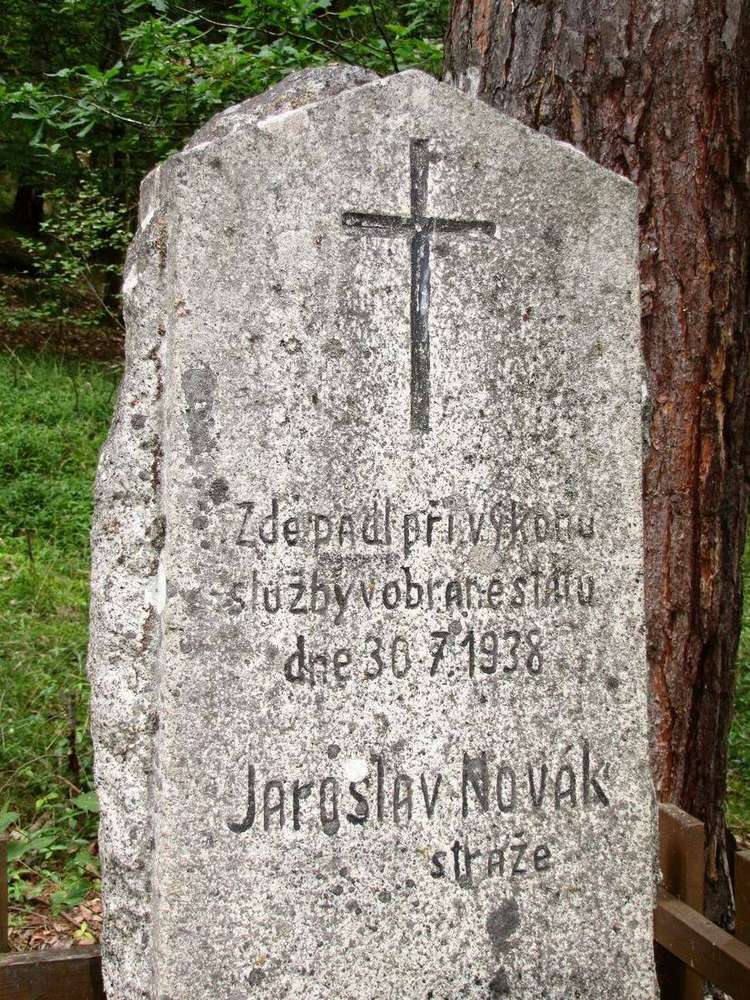 Cetviny Žulový pomník věnovaný památce příslušníka finanční stráže stojí poblíž turistického hraničního přechodu Cetviny - Mairspindt.