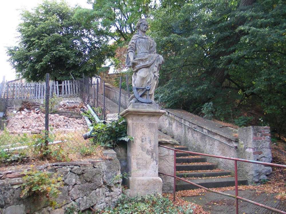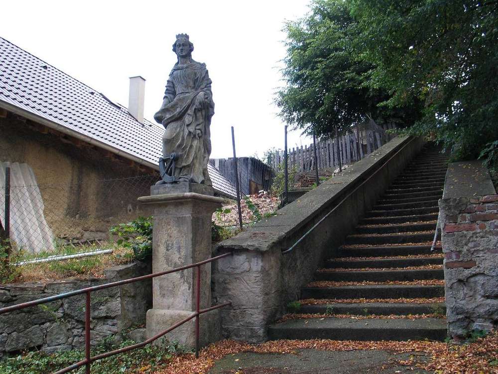 Pískovcová socha křesťanské mučednice sv. Kateřiny se nachází vlevo pod schody ke hřbitovnímu areálu, který obklopuje kostel sv. Vojtěcha ve Slatině. Jedná se o kvalitní kamenosochařskou práci neznámého autora z poloviny 18. století. Atribut u nohou světice představuje část kola mučícího stroje, na kterém měla být císařem Maxentiem kolem roku 300 n.l. popravena. Anděl Páně však podle legendy stroj roztrhl a Kateřina byla nakonec popravena stětím hlavy mečem.