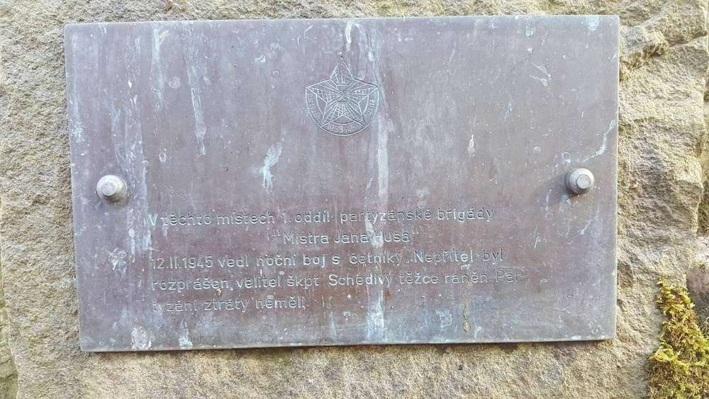 Počátky Nápis na pomníčku: "V těchto místech I. oddíl partyzánské brigády "Mistra Jana Husa" 12. II. 1945 vedl noční boj s četníky. Nepřítel byl rozprášen, velitel škpt. Schedivý těžce raněn. Partyzáni ztráty neměli."