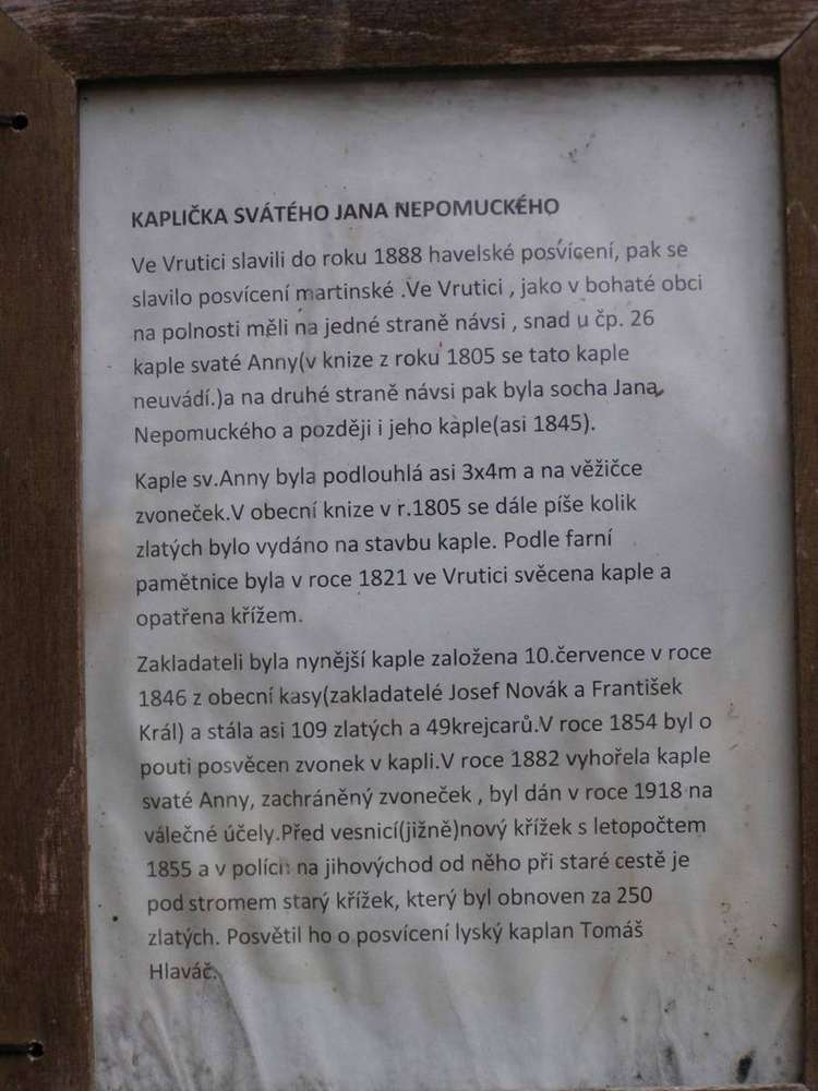 Benátecká Vrutice Kaplička byla postavena v roce 1846