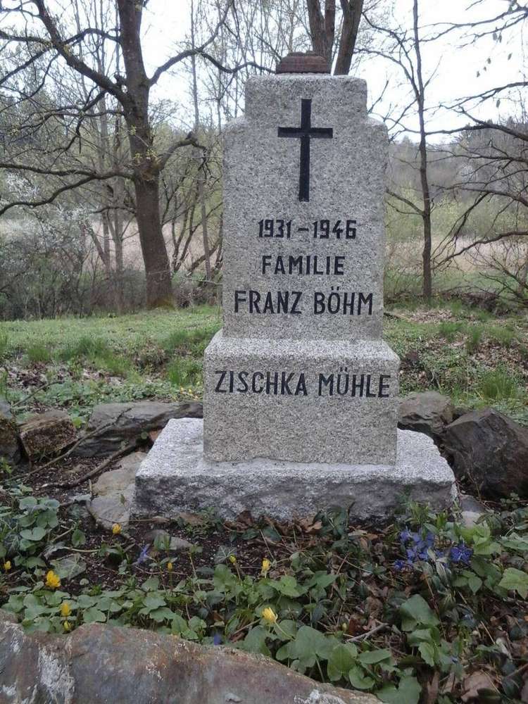 Na památku své rodiny nechala mlynářova dcera Johanna po r. 2000 očistit a doplnit nápisem znějící "† 1931-1946 FAMILIE FRANZ BÖHM ZISCHKAMÜHLE".