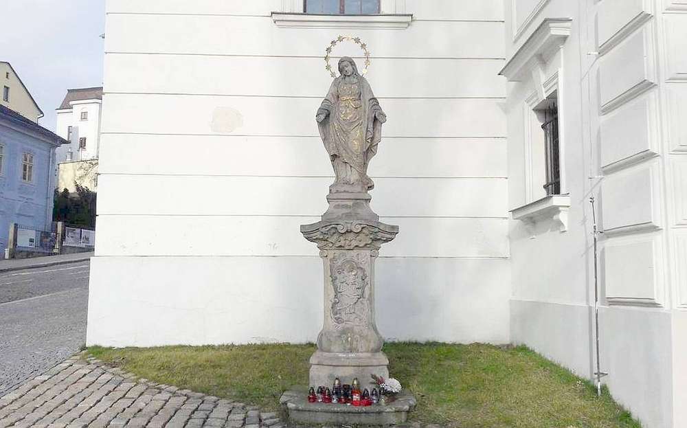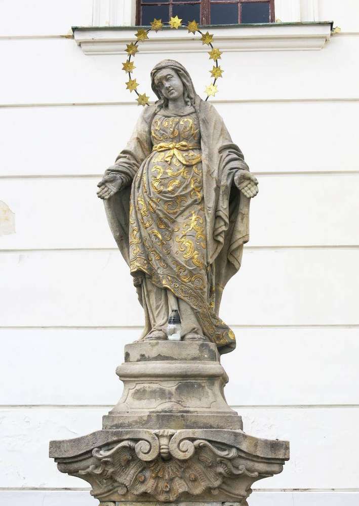 Jablonec nad Nisou Socha Panny Marie Karlovské. Její historii si lze přečíst v příloze Jabloneckého měsíčníku 6/2018, str. II.: