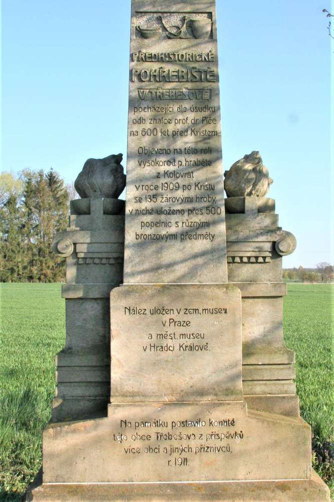 Předhistorické pohřebiště v Třebešově pocházející dle úsudku odb.znalce prof.dr.Piče na 600 let před Kristem. Objeveno na této roli vysokorod.p. hraběte z Kolovrat v roce 1909 po Kristu se 135 žárovými hroby v nichž uloženo přes 500 popelnic s různými bronzovými předměty.