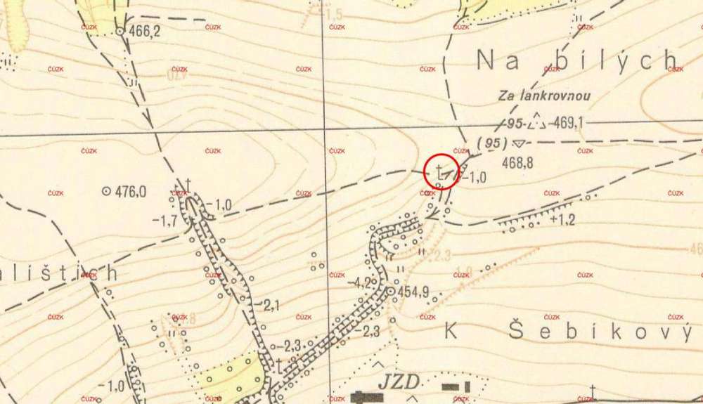 Žebnice U rozcestí cest rozoraných v 1948-1989.