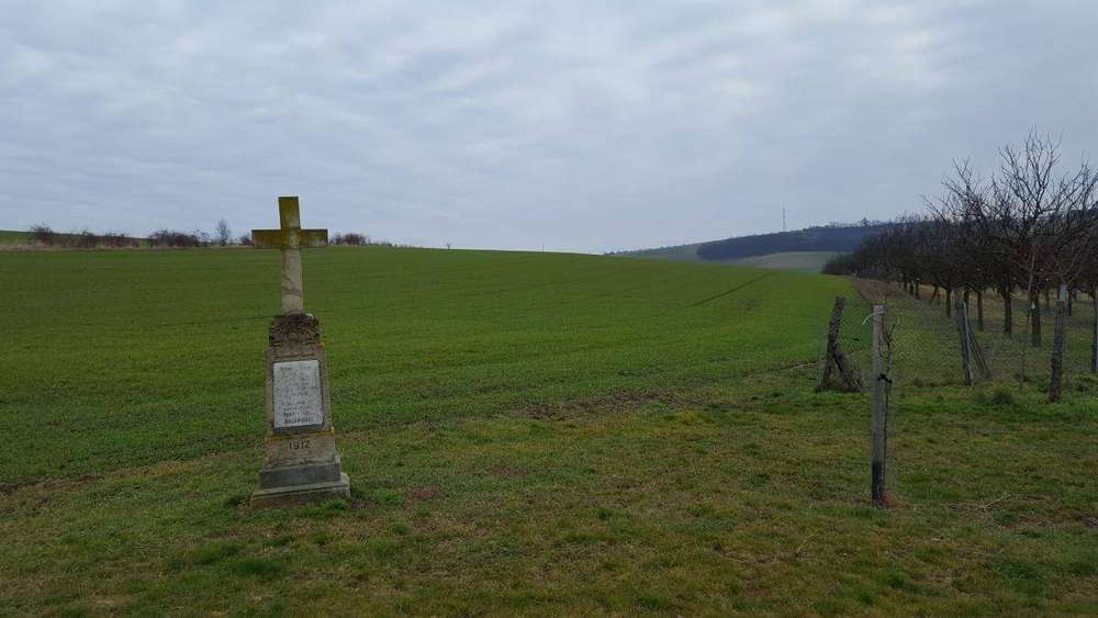 Horní Bojanovice Kamenný kříž u hřiště v Horních Bojanovicích.