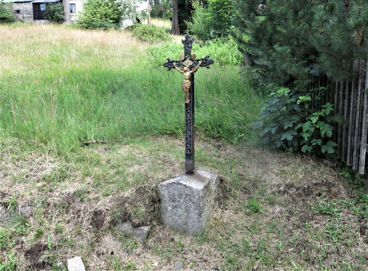 Bedřichov Stav v r.2020: podstavec s vylomeným křížem