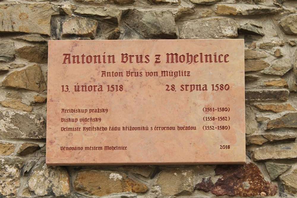 Mohelnice Pamětní deska arcibiskupa Antonína Bruse, mohelnického rodáka. Žil v letech 1518 - 1580.