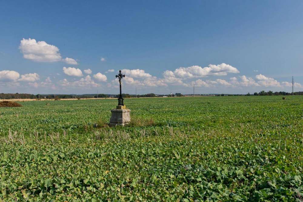 Památka je oborána (v poli bez přístupové cesty):