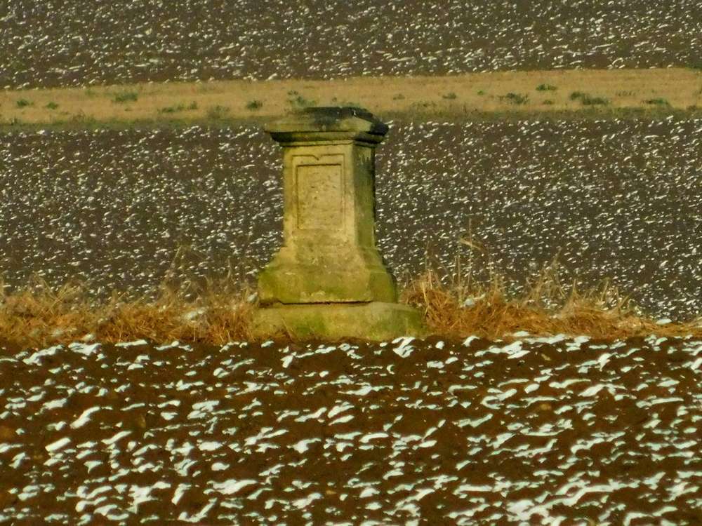 Památka je oborána (v poli bez přístupové cesty):