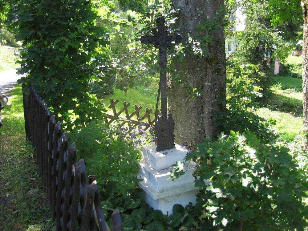 Háj u Loučné pod Klínovcem Kříž je na soukromém pozemku u obytné budovy, majitelem nemovitosti nedávno opraven a je pečlivě udržován.