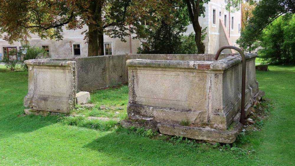 Police u Jemnice Torzo kašny se nachází v přední části zámeckého parku.