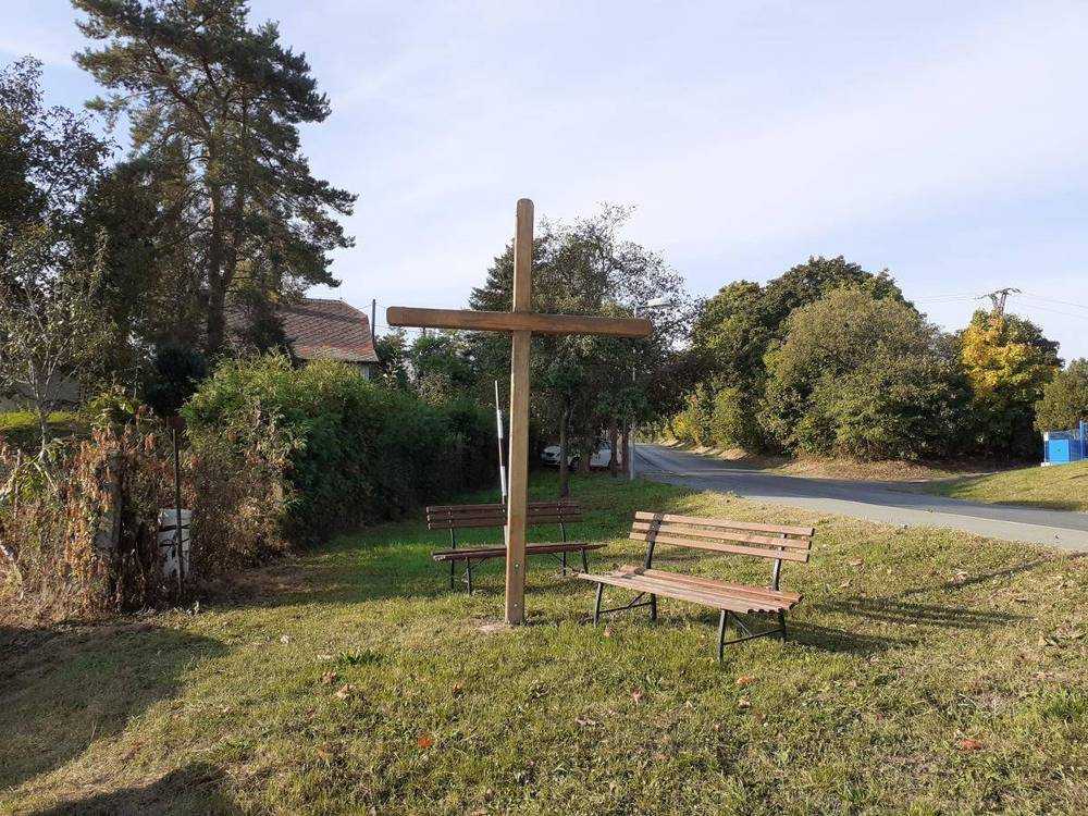 Chlumec nad Cidlinou Dřevěný kříž doplněný posezením, umístěný v lokalitě zvané Pod Katovnou.
