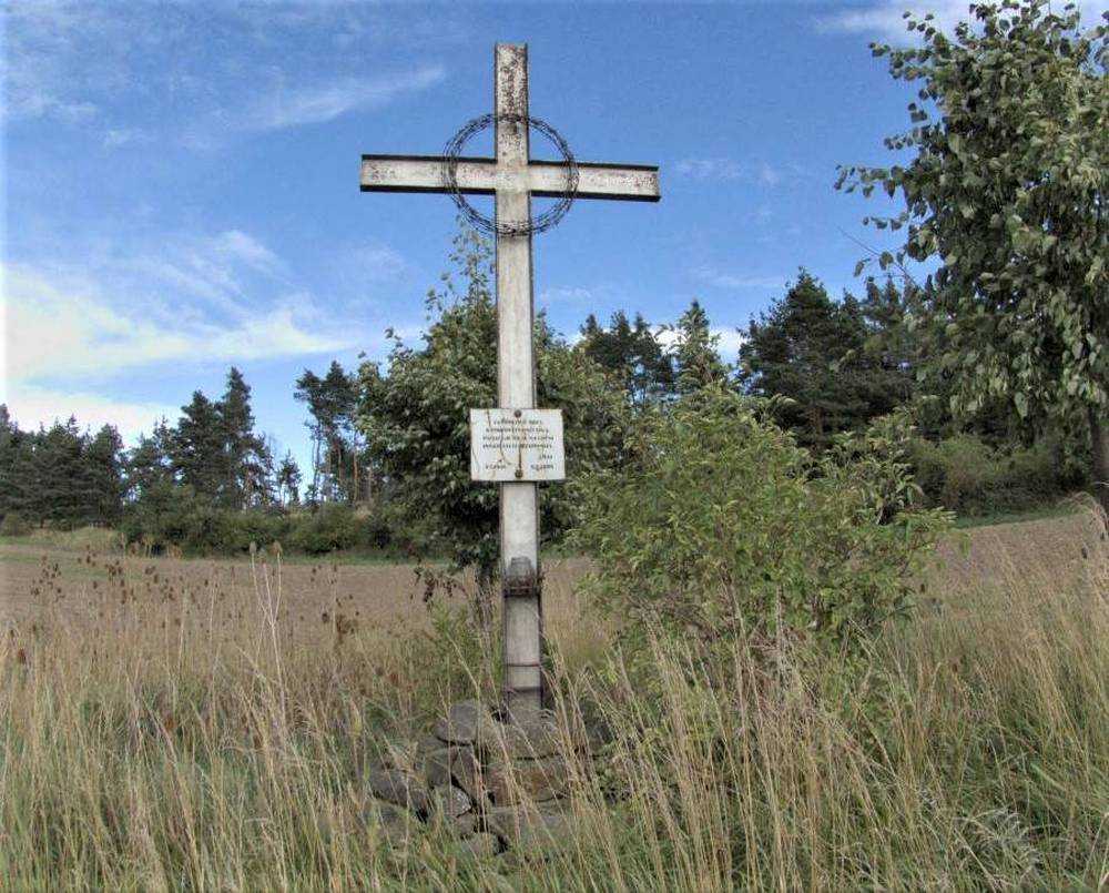 Grešlové Mýto Pomník u polní cesty. Dle slovního sdělení mé babičky (nar. 1938) - Pomník otci rodiny, který nedaleko v rokli ukrýval za 2. světové války svou rodinu. Při kontrolní pochůzce byl spatřen německými vojáky. Aby neprozradil úkryt a neohrozil své nejbližší, dobrovolně se Němcům vydal a byl zastřelen. Vrahové byli místními dopadeni a na oplátku také zavražděni.