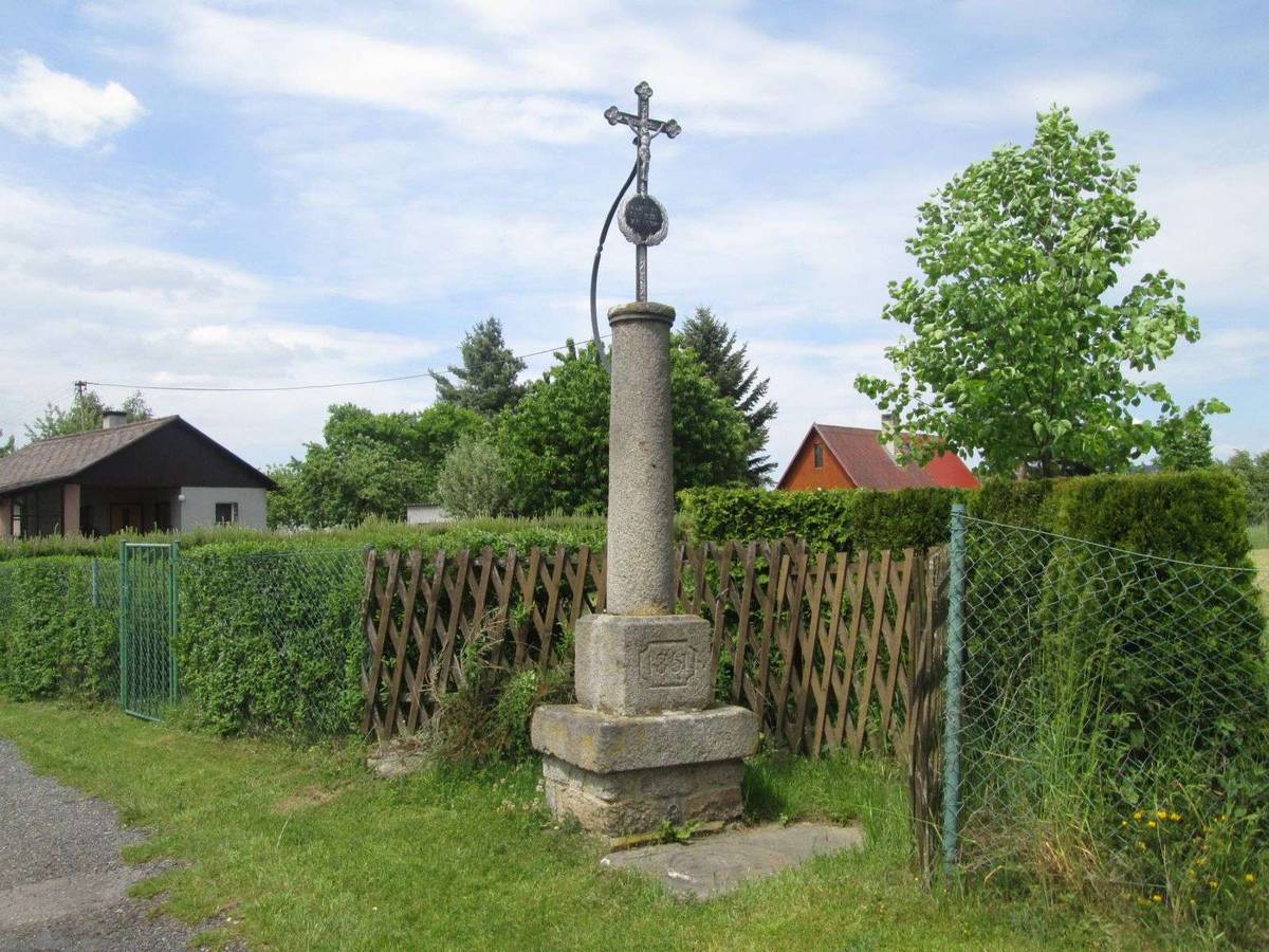 Před křížem je v zemi náhrobní kámen s erbem Benedů z Nečtin. (Vítaný host v Plzeňském kraji, č. 03/2025)