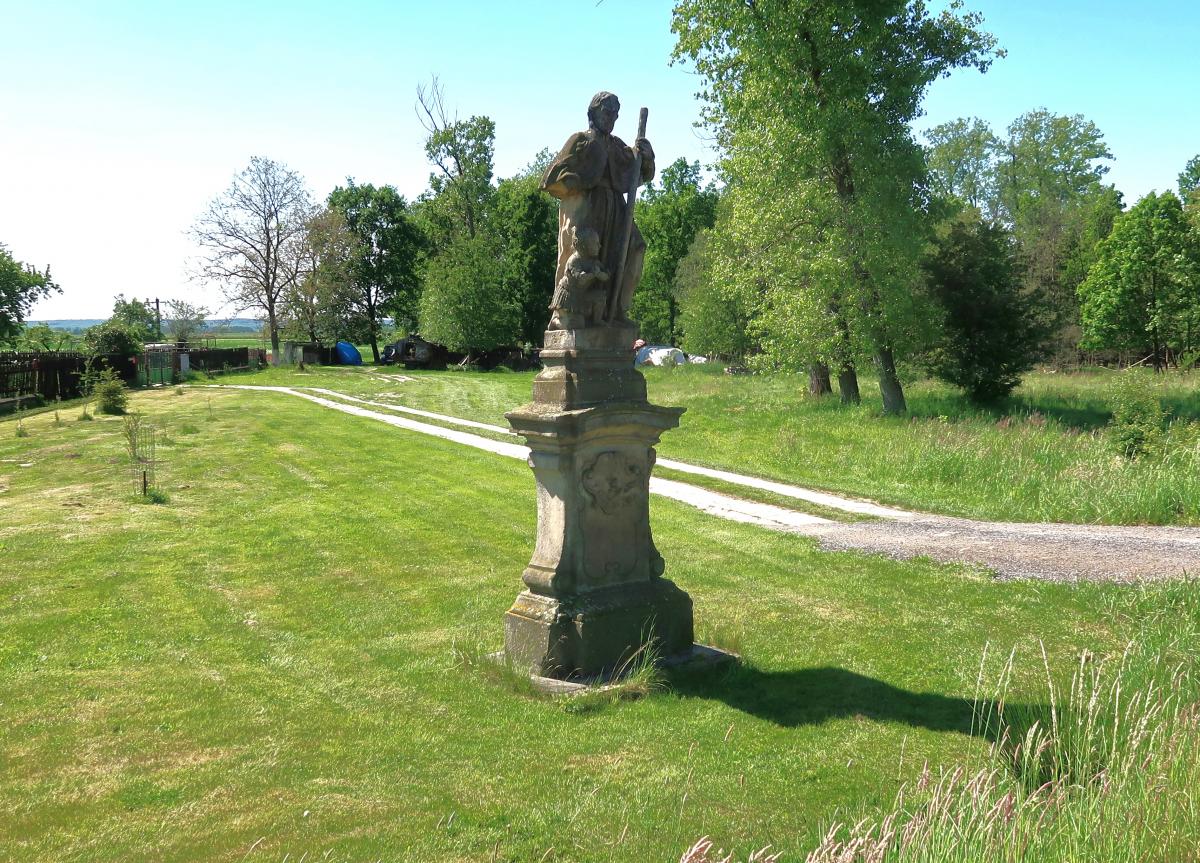Socha není na území Kunčic, na původním místě v oboře, ale o 6 km jinde, přímo na okraji vsi Barchov. Okolnosti přemístění jsou zatím poněkud nejasné. Podle starosty obce Barchov byla začátkem 90. let poškozena lesáky a pak po opravě v sochařské škole v Hořicích přemístěna do Barchova, ale MNV Kunčice již v roce 1976 památkářům psal, že o této soše nikdo v obcí nic neví. Není ovšem jasné, proč se jí ujala jiná obec, když Barchov s Kunčicemi dokonce ani nesousedí.