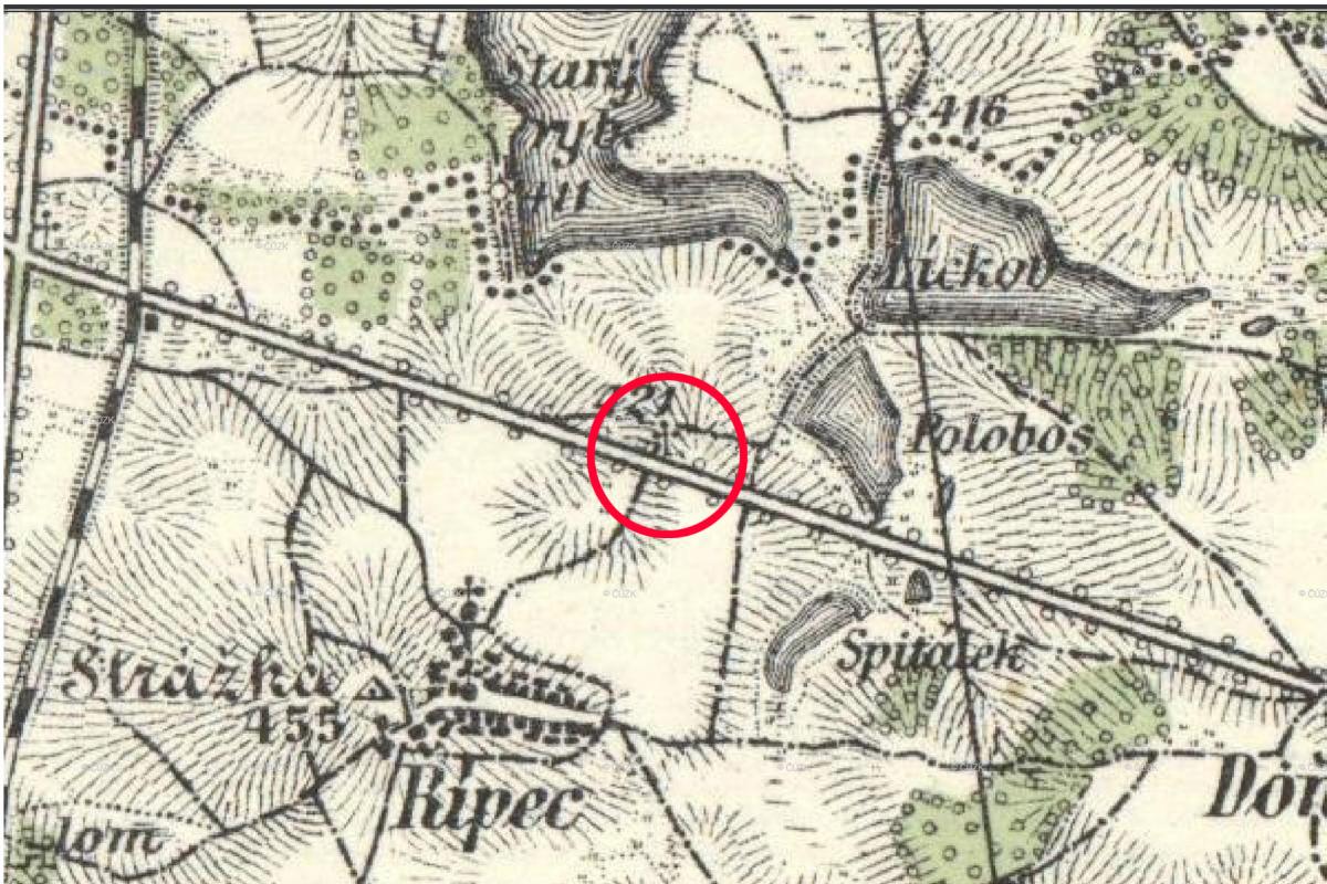 Doňov Stávala u rozcestí silnice z rozoranými cestami (1948-1989). Naposledy na mapě z 1938.