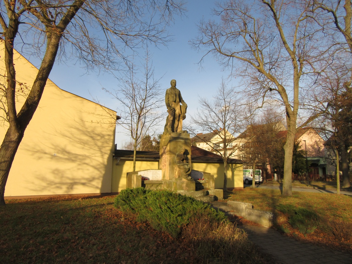 Olomouc Mohutný pomník se sochami připomíná jména téměř stovky obětí obou světových válek.