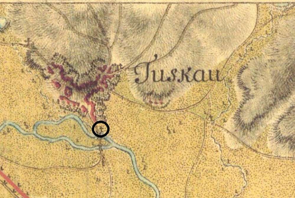 Město Touškov U původního mostu přes Mži, poloha přibližně podle mapy z 18. století, asi původní umístění https://www.drobnepamatky.cz/node/2037
